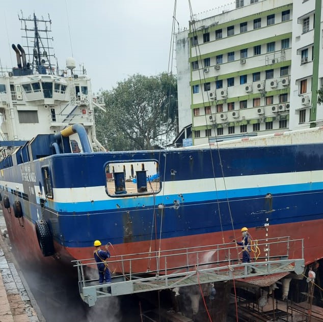 Chipping, sand blasting and painting of ship from E/R, Accommodation deck and hull part. We take complete turnkey job in dry dock for chipping, sand blasting in painting ship’s hull, deck part etc.